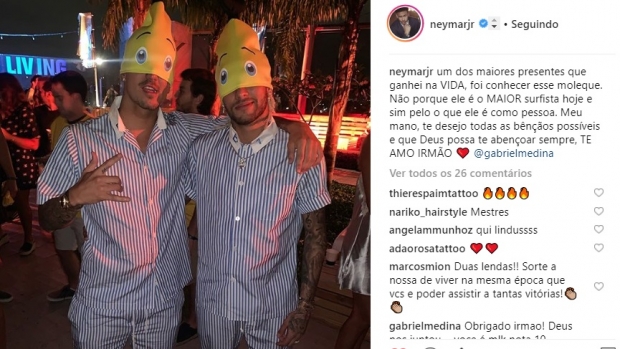 E para melhorar ainda mais, o surfista convidou o grande amigo Neymar, para combinar o look da comemoração.