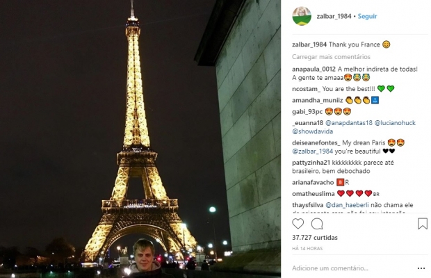De férias no país europeu, Yury postou uma foto em frente à Torre Eiffel com a seguinte legenda: “Obrigado, França”.