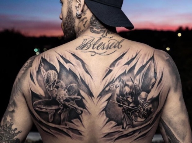 Com tatuagens espalhadas pelo corpo inteiro, o craque Neymar decidiu cobrir toda a região das costas com uma homenagem para os heróis favoritos dele.