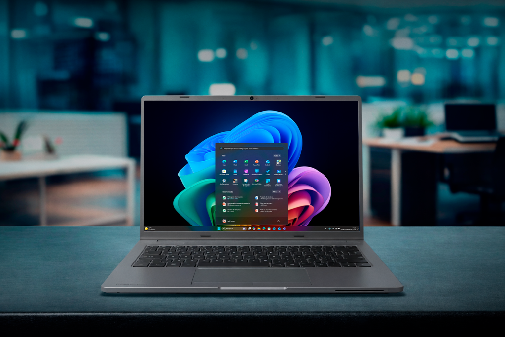 Os novos modelos aceleram operações de IA diretamente no dispositivo, o que reduz a dependência da nuvem. A NPU dedicada com 50 TOPs (trilhões de operações por segundo) indica a capacidade do notebook de executar, em larga escala e de forma contínua, tarefas de inteligência artificial, como análise de imagens, reconhecimento de padrões e automações. Tudo isso a partir de hardware especializado e sem comprometer o desempenho de aplicações mais pesadas. Esse nível de processamento é um dos requisitos que qualificam o equipamento para a categoria Windows Copilot+ PC, projetada para rodar experiências avançadas de IA de forma nativa no sistema operacional, incluindo acesso direto às funcionalidades inteligentes por meio de tecla dedicada.